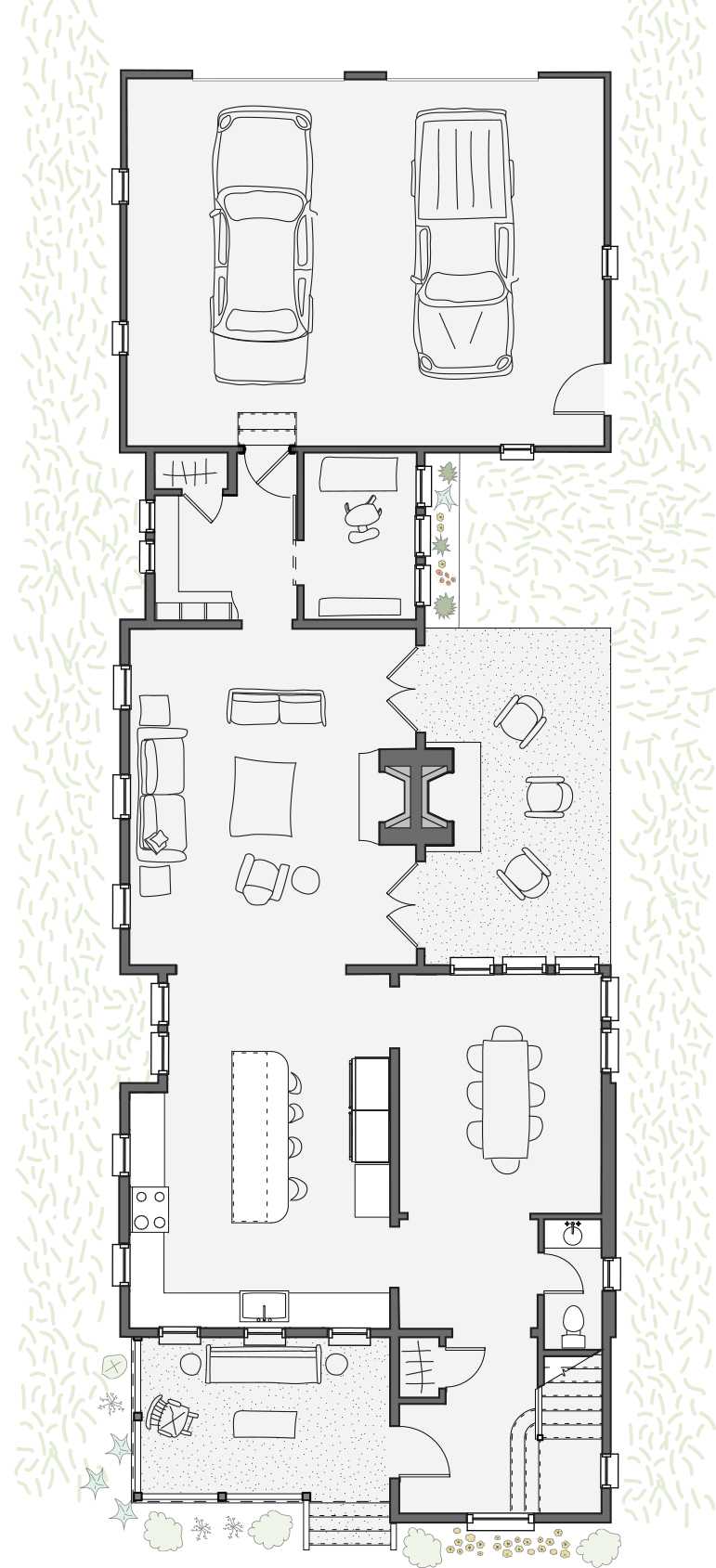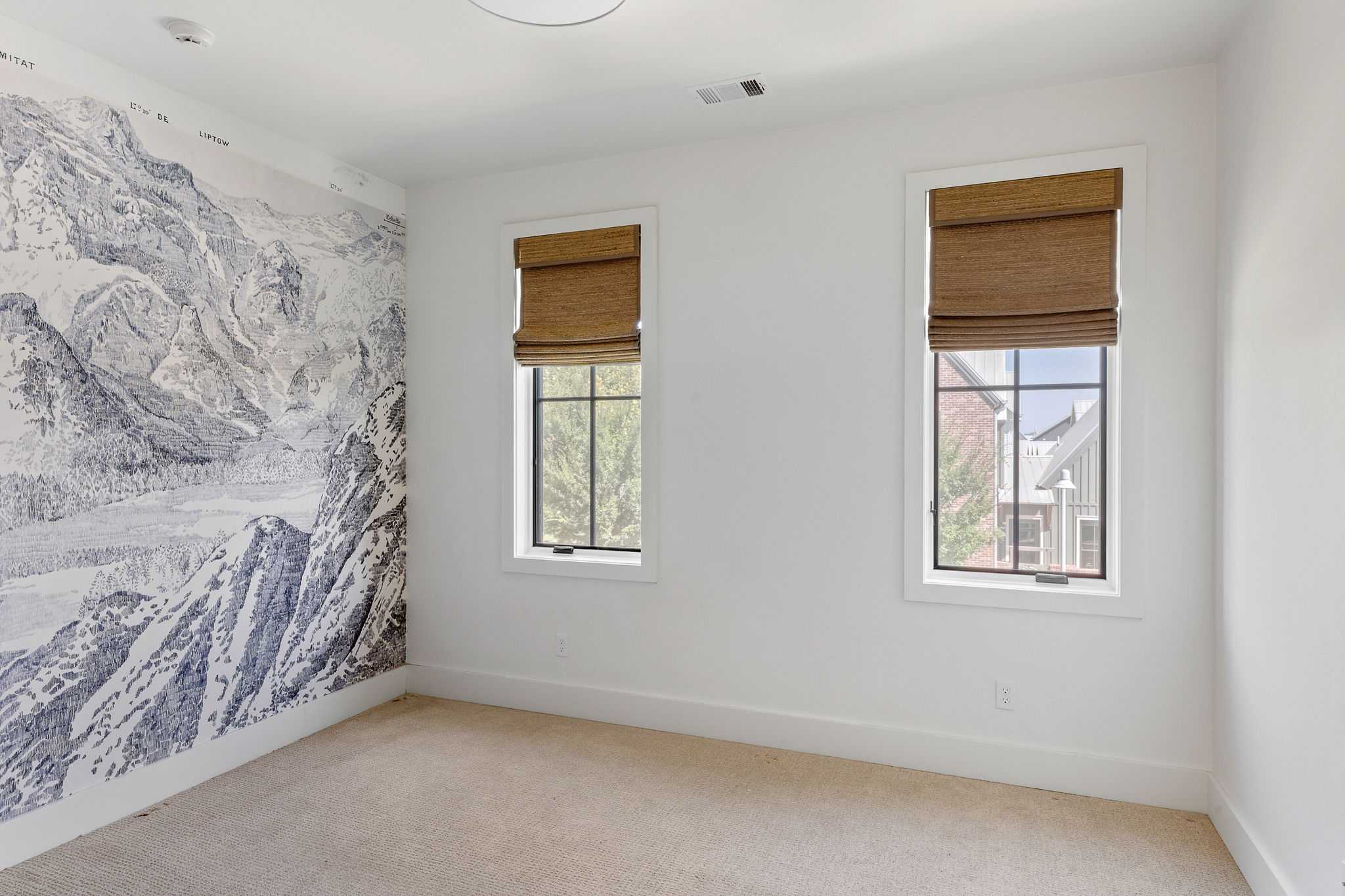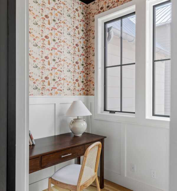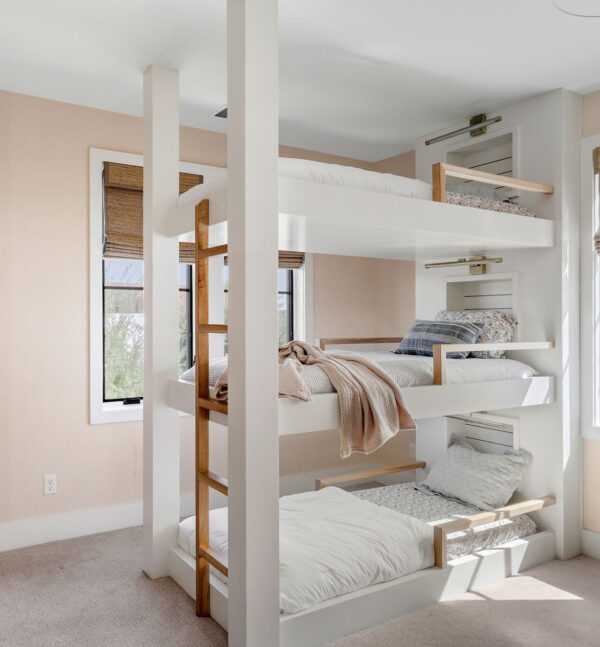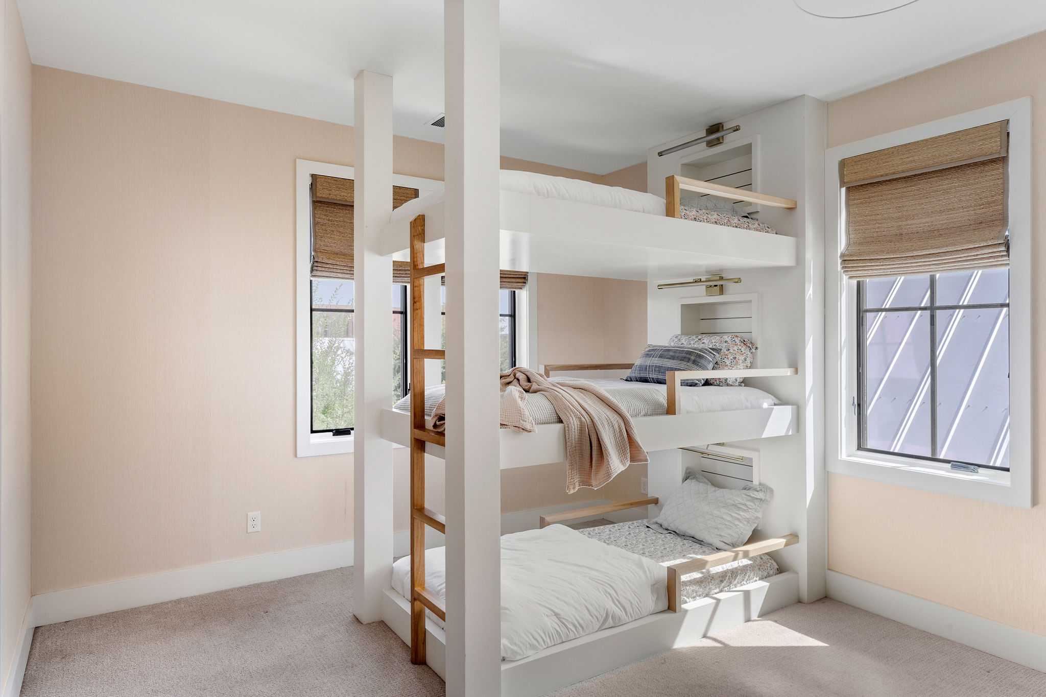 The living room flows seamlessly into a private courtyard anchored by indoor and outdoor fireplaces, creating a warm and welcoming space year-round. Upstairs, a vaulted owner’s suite feels like a retreat, while a clever triple bunk room offers fun and flexibility for family or guests. A mudroom, pocket office, upstairs utility, and flex space nook round out the thoughtful design.